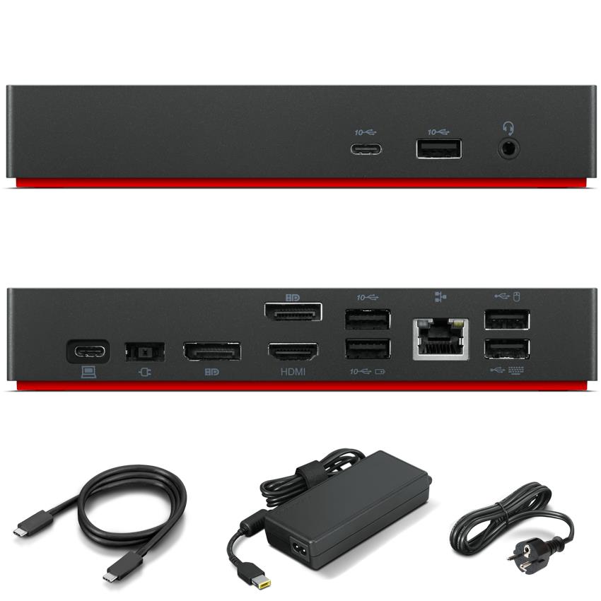 Lenovo ThinkPad Universal USB-C Dock - 1xHDMI, 2xDP,1xUSB-C 3.2 G2, 2xUSB-A 2.0, 3xUSB-A 3.2 G2, up to 2x3840x2160 60Hz Monitors, with 135W AC Adapter, Slim, Black.