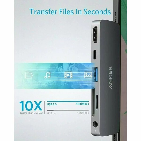 Anker Media Hub PowerExpand Direct for iPad Pro, 6-in-1, 60W Power Delivery, USB-C, 4K HDMI, Audio 3.5mm, USB 3.0, microSD