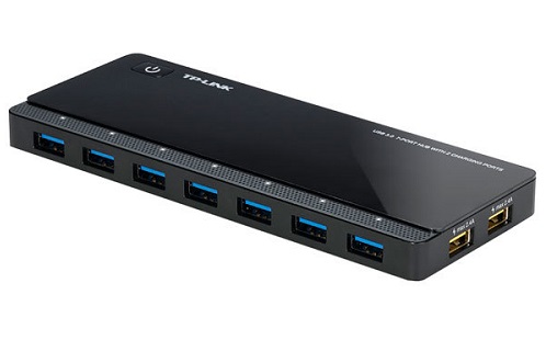 TP-Link UH720, USB3.0 Hub, 7 ports + 2 ports 5V/2.4A charging ports intelligently recognize and optimally charge attached iOS and Android devices, Black, with External Power Adapter