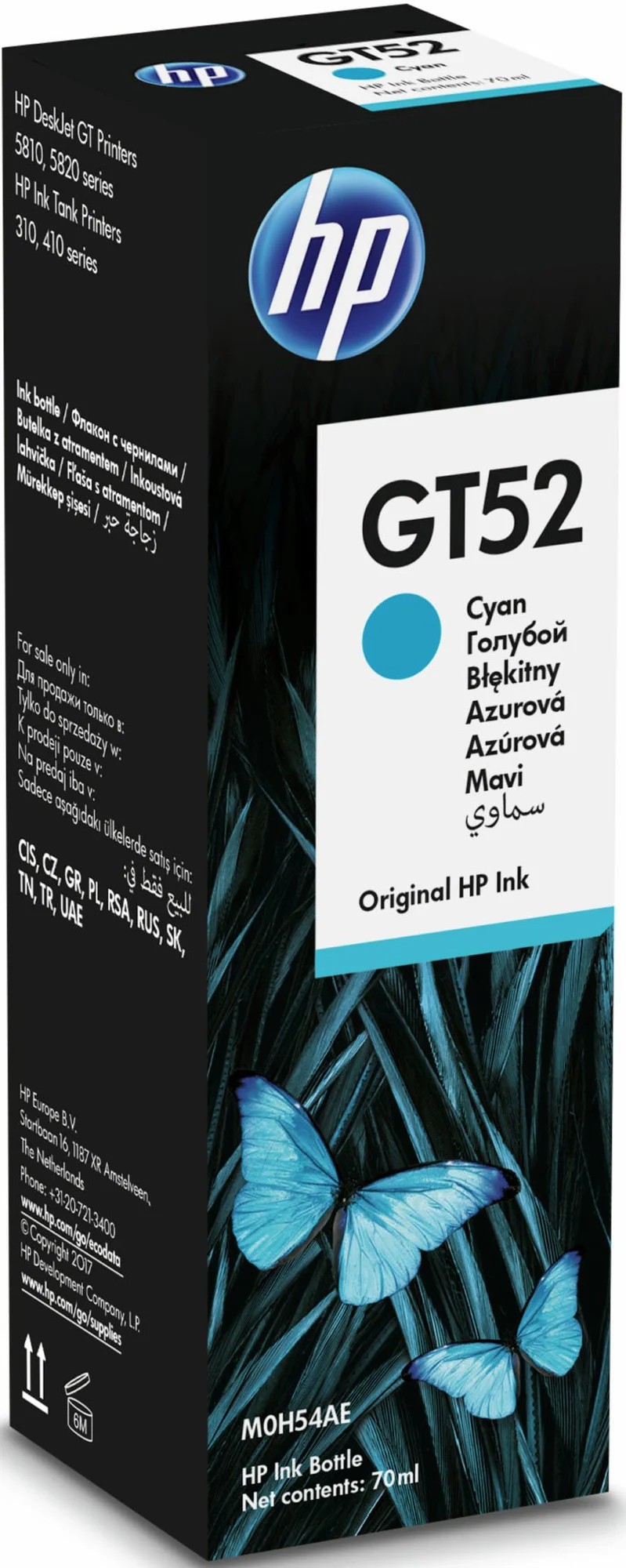 HP GT52 (M0H54AE) Cyan Original Ink Bottle (~8,000 pages), (for HP Ink Tank 115, HP Ink Tank 315/319, HP Ink Tank Wireless 415/419, DeskJet G5810/G5820)