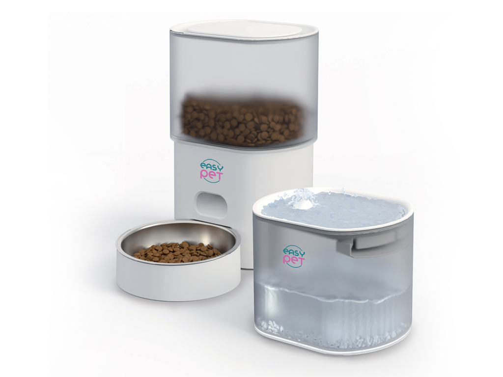 Easy Pet automatic pet feeder 3L + water fountain 2.5L, Program from 1 to 4 meals/day, Display with buttons on the back, Child lock, Dual power modes: anti-bite USB cable/batteries (3xLR20/D not included), LED light, Cotton filter with activated carbon and ion exchange resin, white