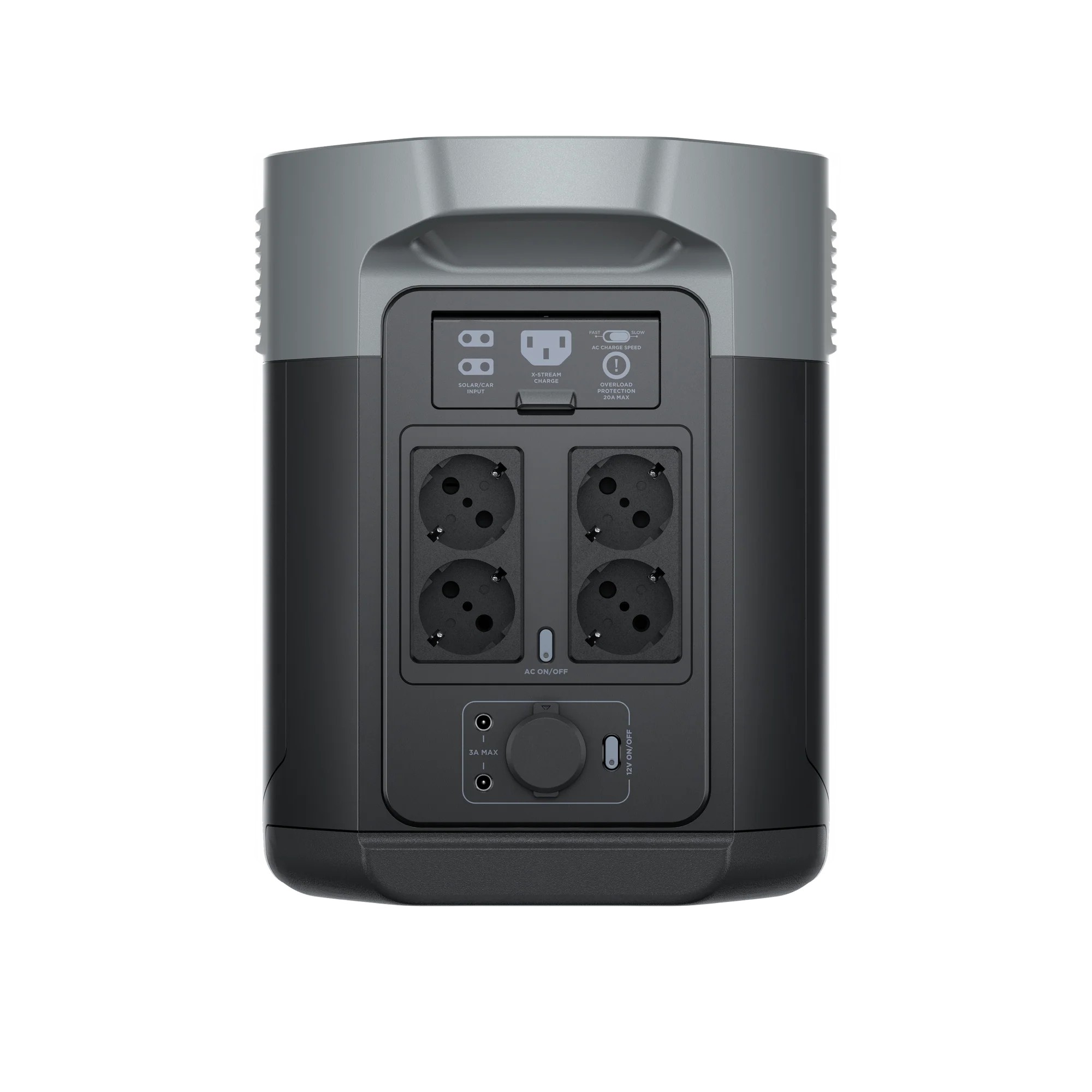 EcoFlow DELTA 2 Max Portable Power Station, Capacity: 2048Wh, AC Output: 2400W total (surge 4800W), Number outlets 13 (4 AC Outlets, 2 USB-A Fast Charge, 2 USB-A, 2 USB-C, 2 DC5521 Output, Car Power Outpu), Mobile App, Bluetooth, WiFi, Net Weight: 23kg, Dimension: 49,7x24,2x30,5 cm