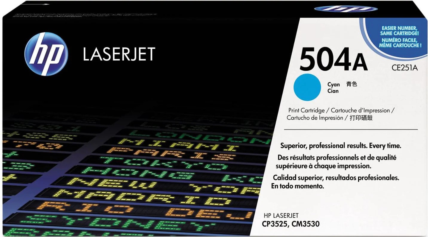 HP 504A (CE251A) Cyan Cartridge for HP LaserJet CP3525, CP3525n, CP3525dn, CP3525x, CM3530, CM3530fs, 7000 p.