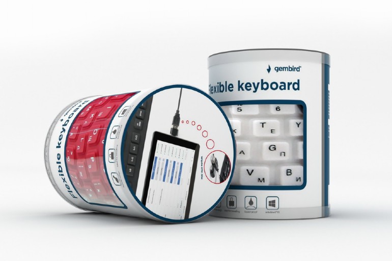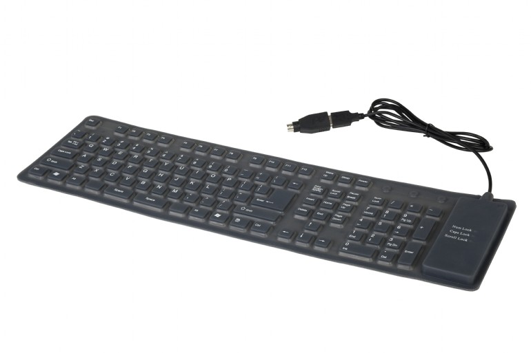 Gembird KB-109F-B, Flexible keyboard, USB, OTG adapter, black color, US layout