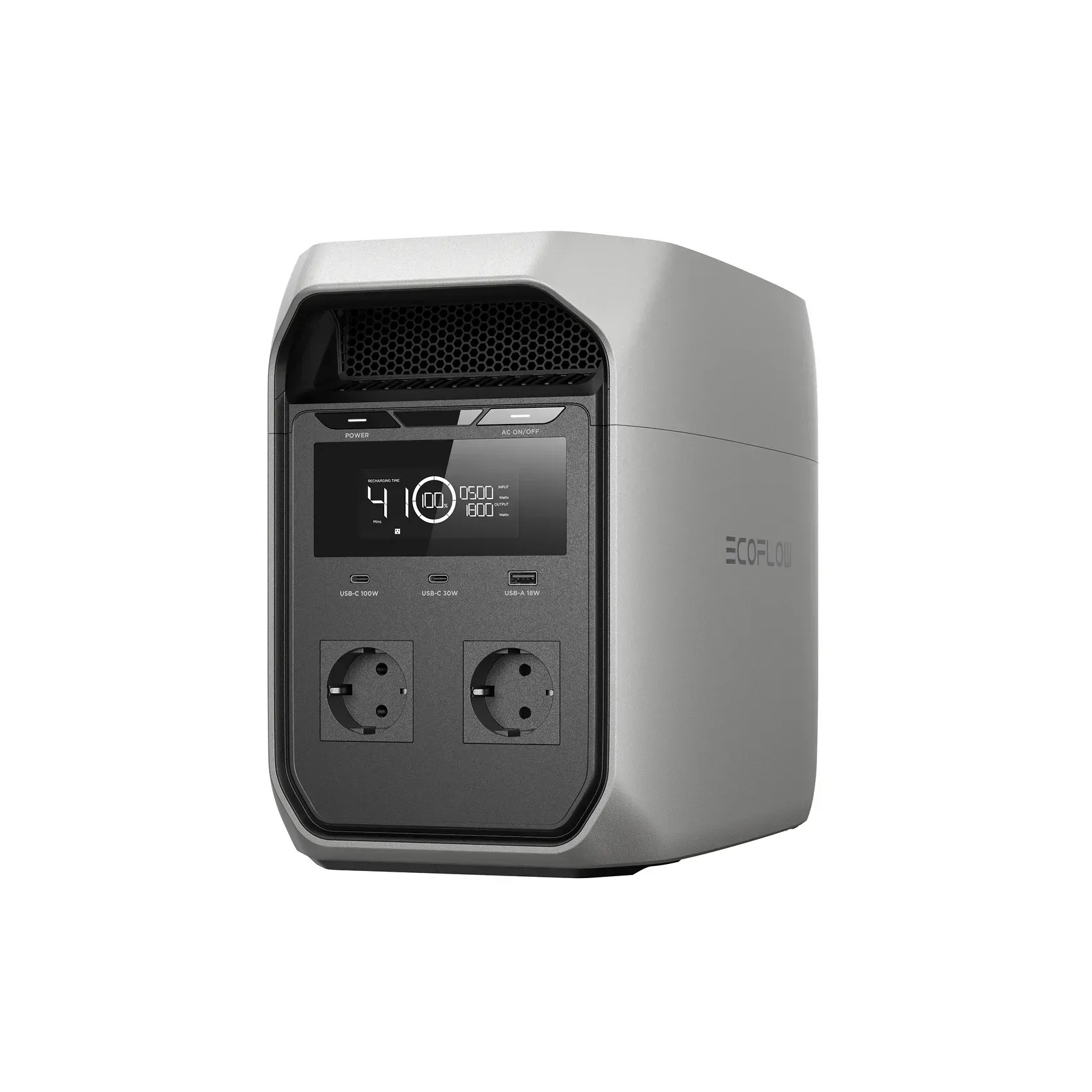 EcoFlow DELTA 3 Classic Portable Power Station, Capacity: 1024Wh, AC Output: 1800W total (surge 3600W), 10ms UPS, Number outlets 6 (3 AC Outlets, 1 USB-A Fast Charge, 2 USB-C), Mobile App, Bluetooth, WiFi, LiFePO4, X-Boost, BMS, IP65, Net Weight: 12,1kg, Dimension: 40x20x28 cm